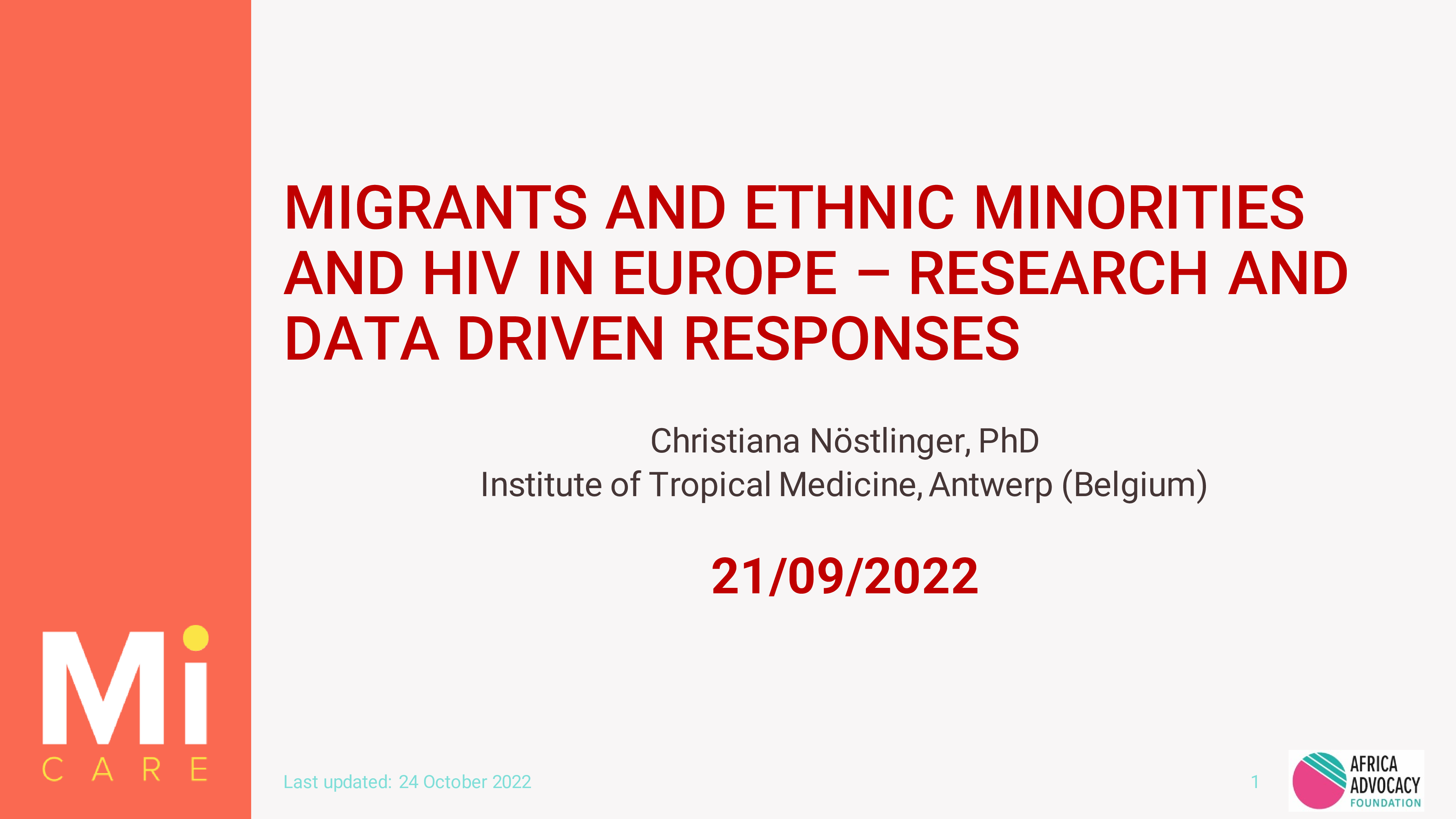 Module 7: This module covers HIV research on migrants and ethnic minorities in Europe, including gaps in the literature and data-driven advocacy.