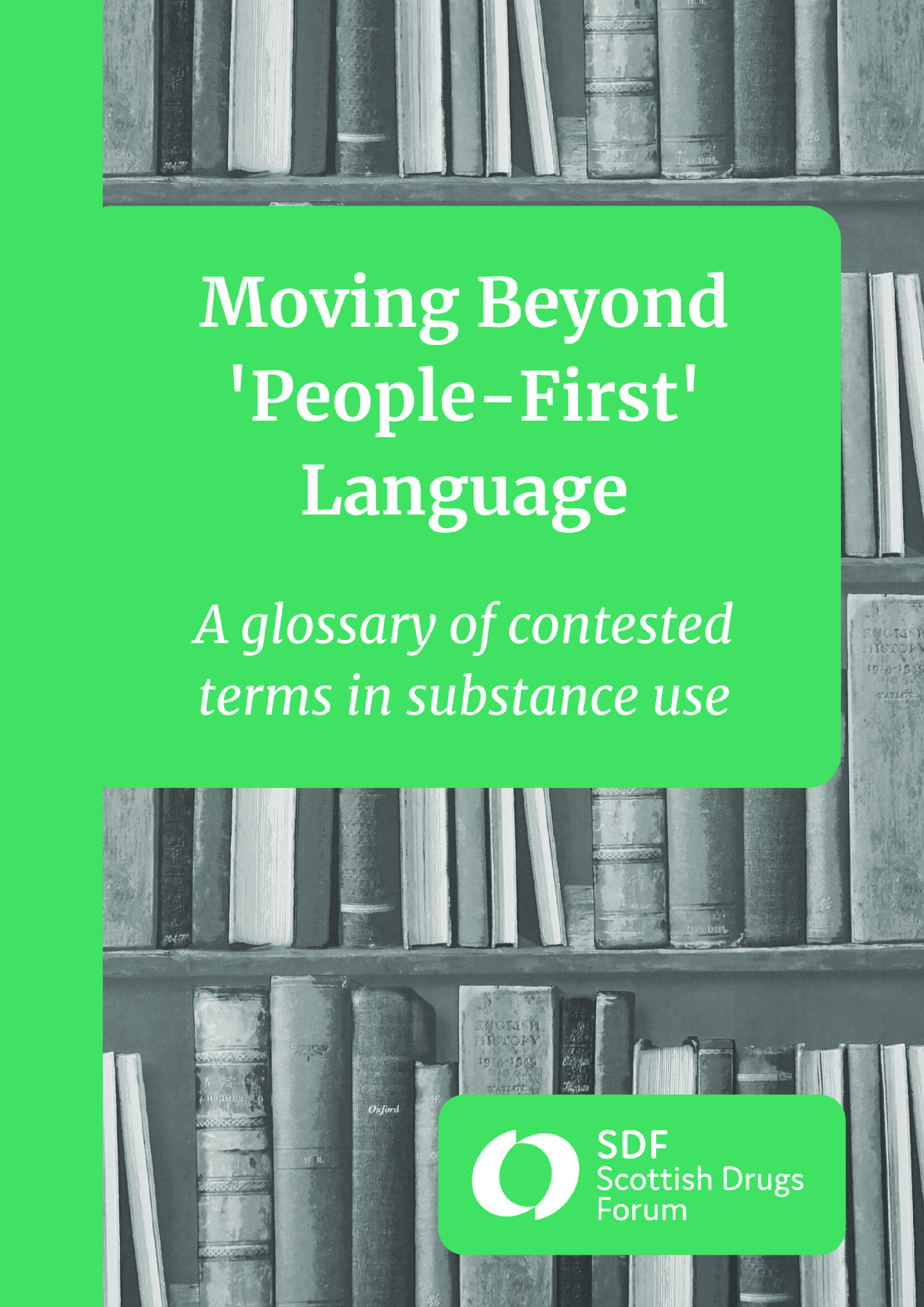 "This glossary was developed originally for SDF board members, staff, trainees and volunteers. In publishing it, SDF aims to improve communication and shared understanding across the drugs field in Scotland by increasing understanding of the language used both in everyday conversation and discussion of drug issues and in more specialist environments. This glossary clarifies the nature of any contention so that people can at least understand the viewpoints of others and, hopefully, any limitation in their own insight, when they cannot agree. SDF’s own organisational language choices are explained."