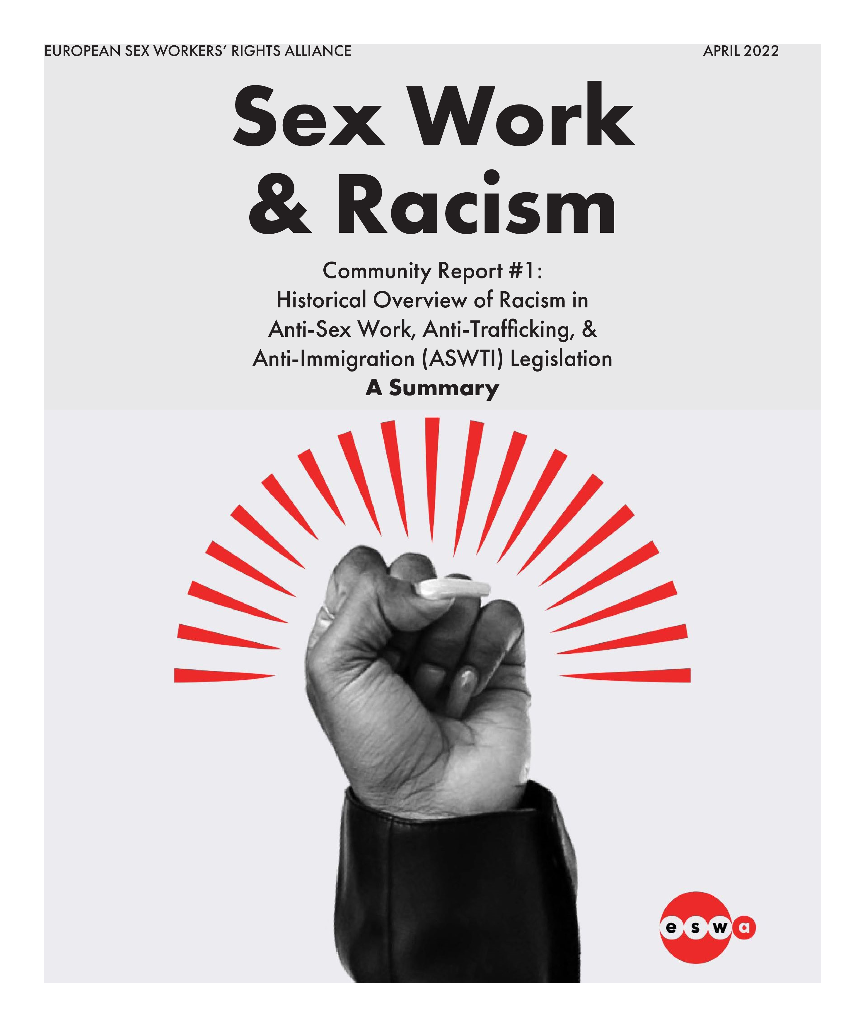 For racialised sex workers, many of whom are (undocumented) migrants, the racism and discrimination they experience is structurally rooted in a socio-political landscape that includes anti-sex work, anti-trafficking, and anti-immigration (ASWTI) laws and policies. This community report explores how racism is entangled in ASWTI legislation in Europe. To do so, the European Sex Workers’ Rights Alliance (ESWA) conducted a literature review on the history of sexualised racism in the European context and racism in global and national sex work policies and laws.