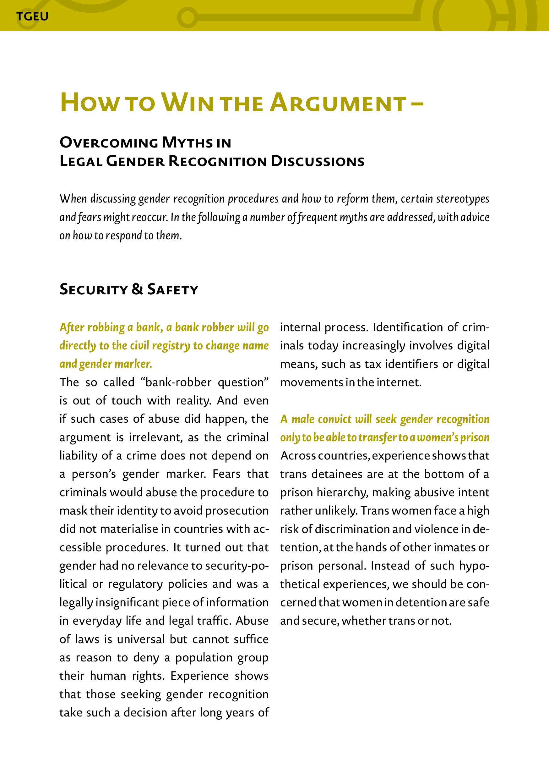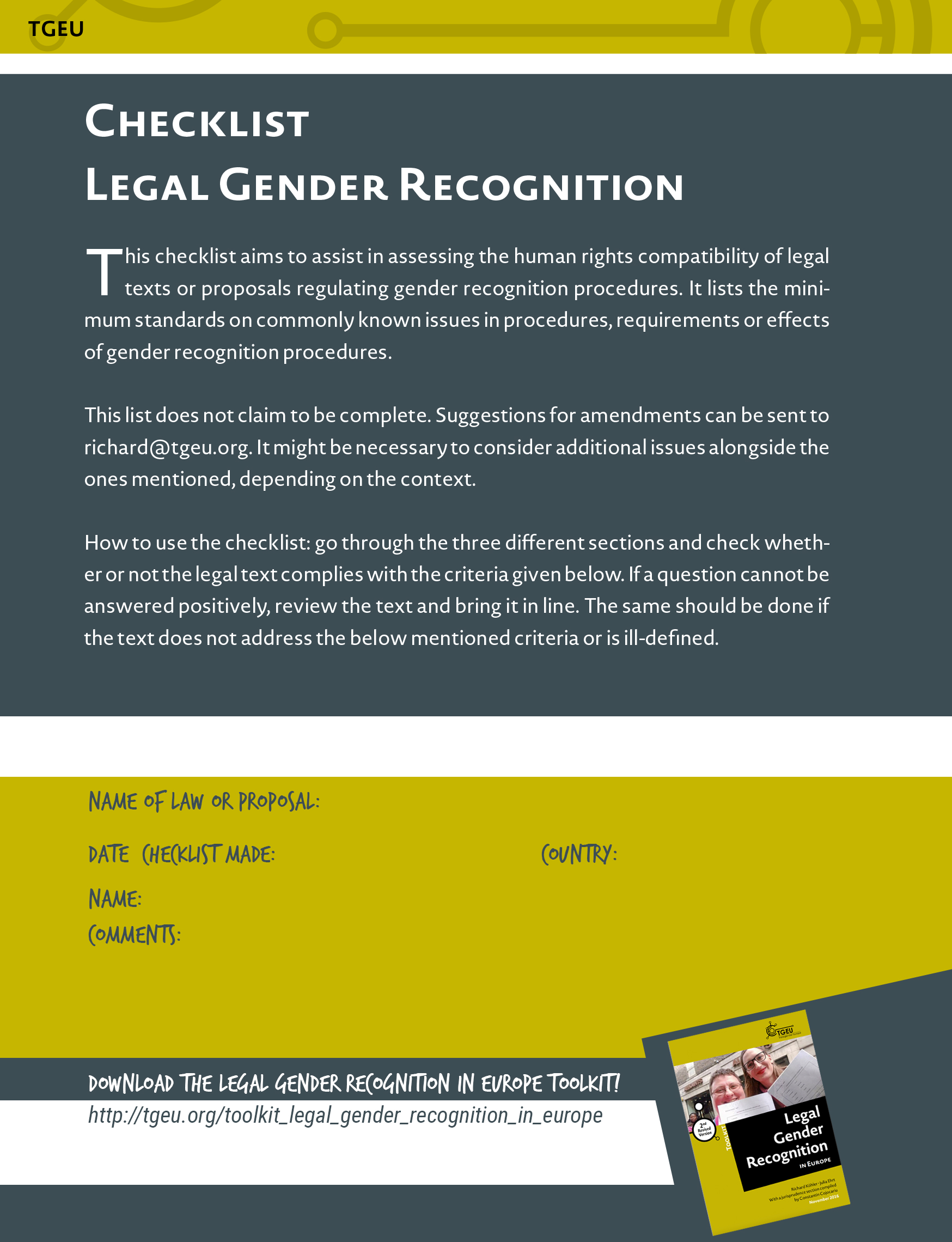 Although this toolkit was published in 2016 it gives you a first impression of what Legal Gender Recognition is and provides helpful Checklists and arguments for discussions around this topic.