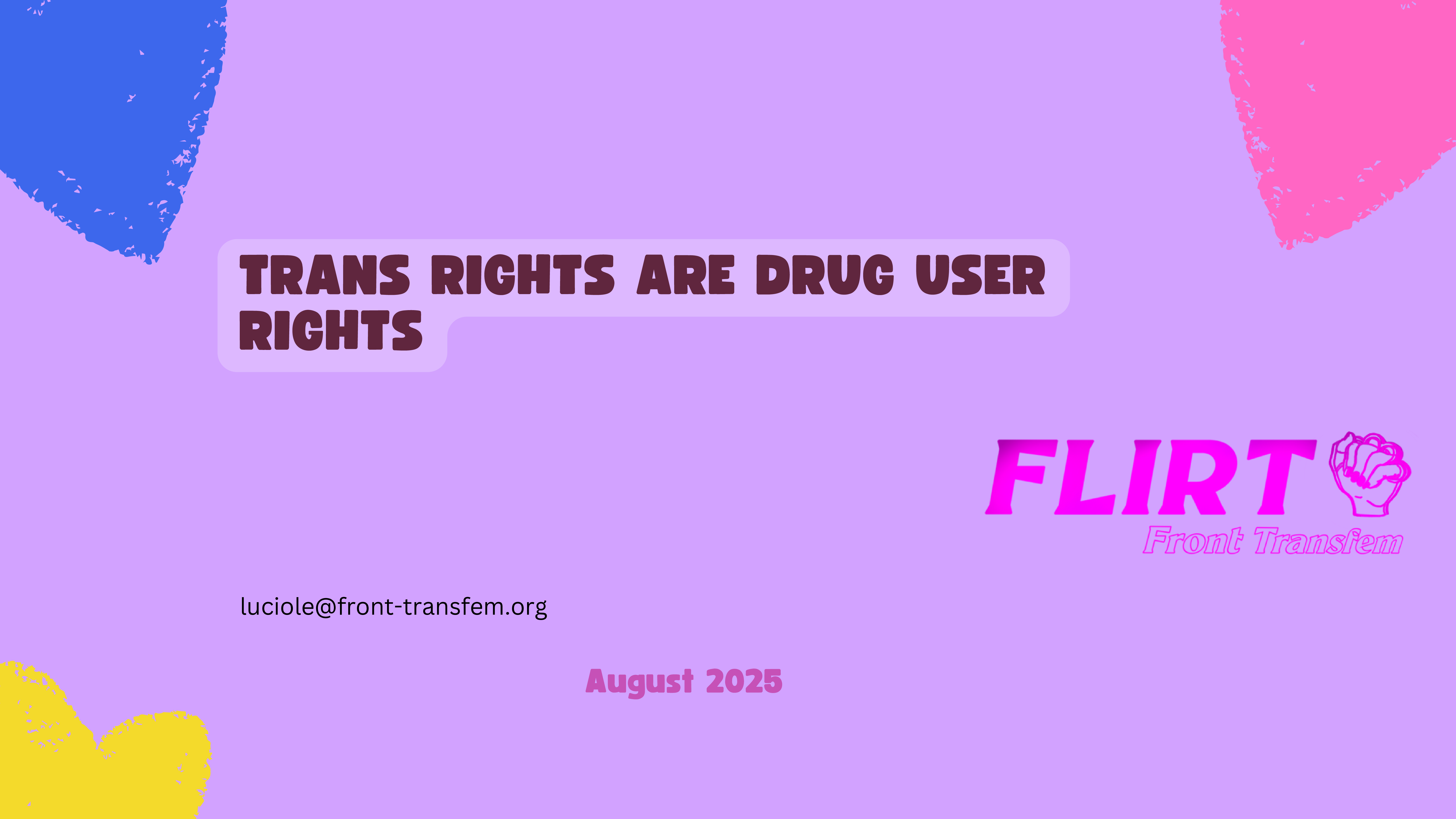The rights of trans people and drug users have been under increasing attack from harmful government policy and violence driven by misinformation campaigns influenced by scare mongering and prohibitionist rhetoric. Intersectional issues such as access to healthcare, labour rights and freedom from criminalisation experienced in our daily lives lead us to champion the need for organising and acts of solidarity." ( https://www.euronpud.net/register-for-the-webinar-trans-rights-are-drug-user-rights/ )