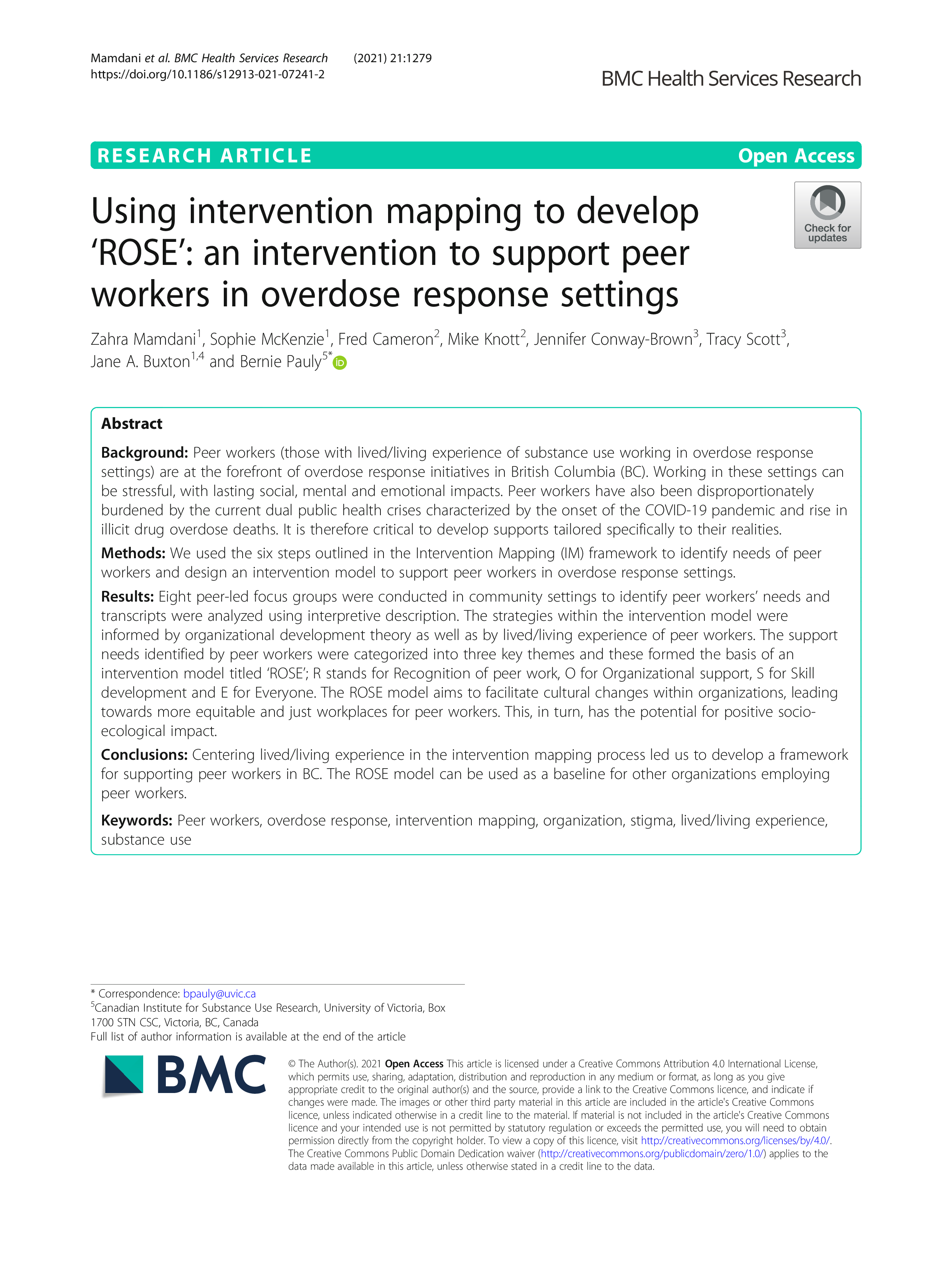 for supporting peer workers in BC. The ROSE model can be used as a baseline for other organizations employing